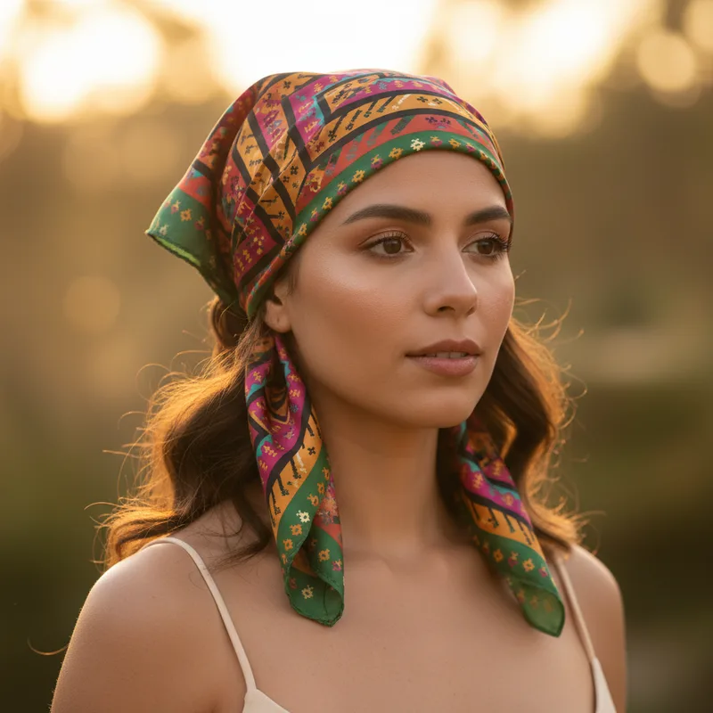 Cada pañoleta ANUDA existe porque alguien la eligió. Producción bajo demanda, sin inventario que se desperdicie. Sublimación sin agua. Satín ecológico. Producción 100% local.